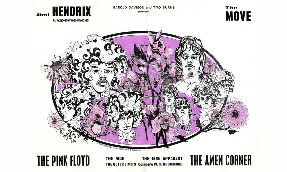 Hendrix was on his way to becoming a major star; his first three singles, ‘Hey Joe’, ‘Purple Haze’, and ‘The Wind Cries Mary’, had all been top ten hits. His debut album released in May of that year was sitting in the top 20 where it stayed for 33 weeks. Pink Floyd had also seen chart action with both ‘Arnold Layne’ and ‘See Emily Play’ reaching the top 20. The Move had also had three top ten hits including ‘Flowers In The Rain’ and Amen Corner were just about to score what would become their biggest hit so far, ‘Bend Me, Shape Me’.